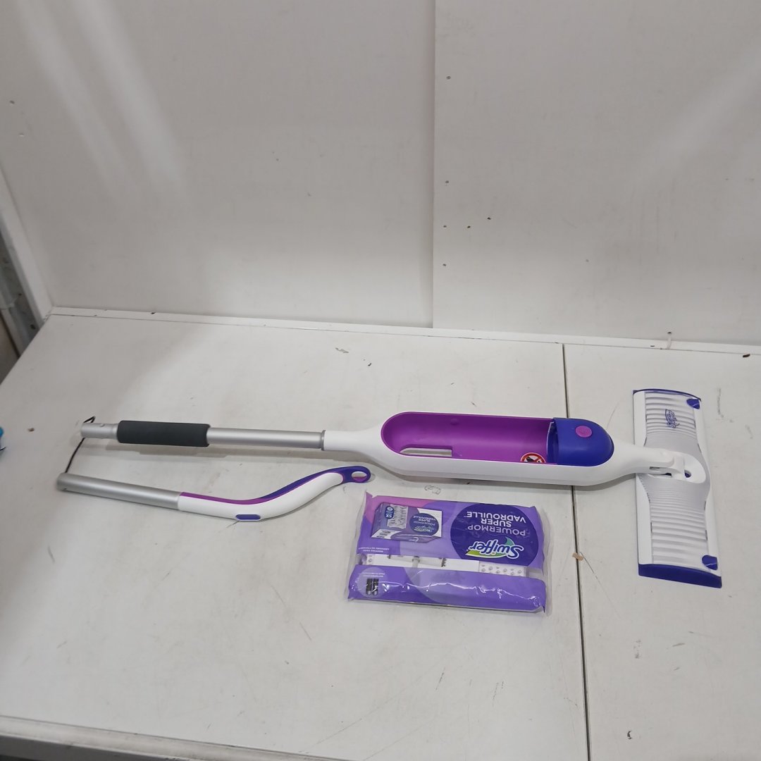 Swiffer PowerMop Multi-Surface Mop with batteries and mopping pads included for Floor Cleaning - purple/white (model: 1842580)
