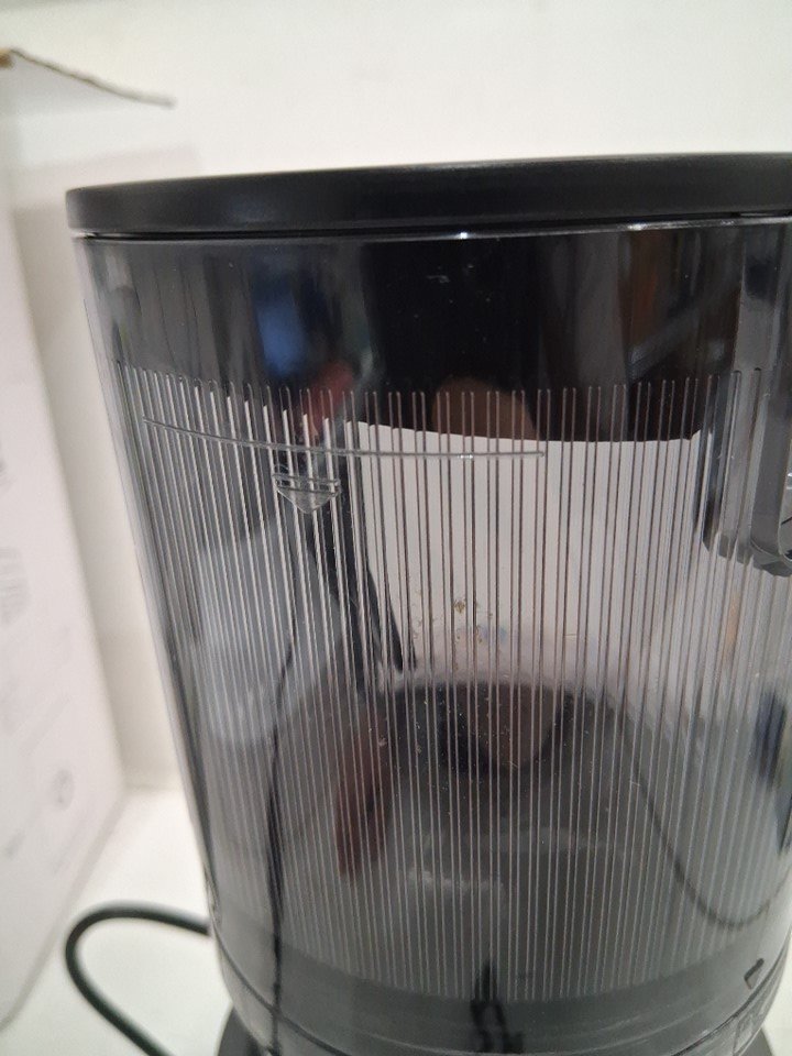 item has some minor debris inside from previous use also the 2 jars are missing tested for power and functionality