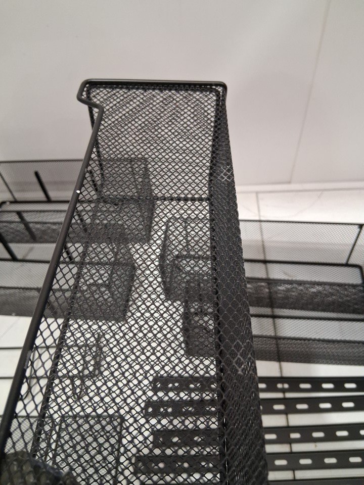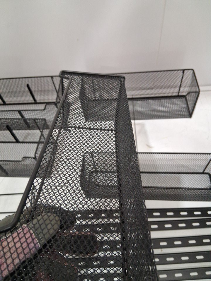 Item has minor scuffs on the bottom edge of two of the baskets and one basket has a minor dent (see photos).