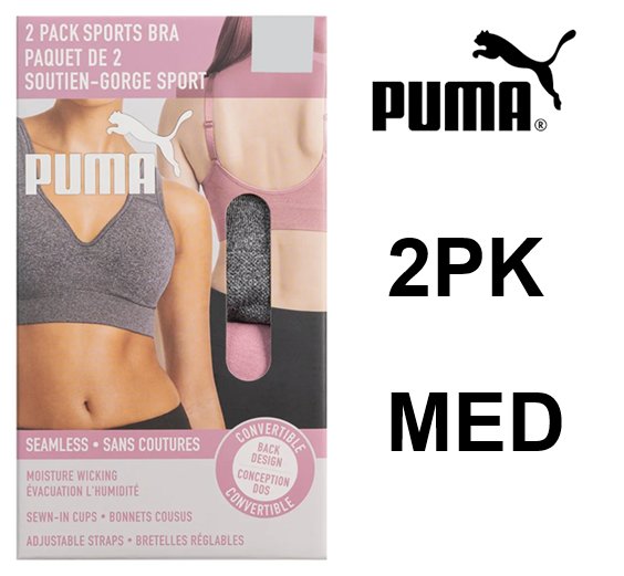 2pk women's puma seamless sports bras with adjustable straps - medium - heather black/pink (STYLE: 1943651)