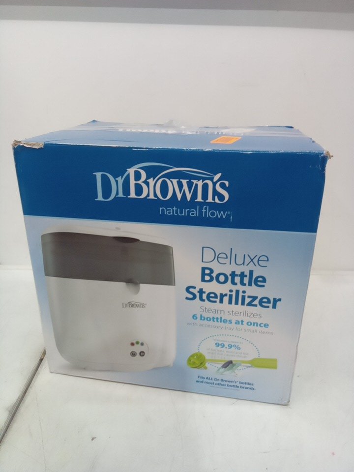 DR BROWNS NATURAL FLOW DELUXE BOTTLE STERILIZER ELECTRIC STEAM SYSTEM - STERILIZES 6 BOTTLES AT ONCE - white (model: AC045)