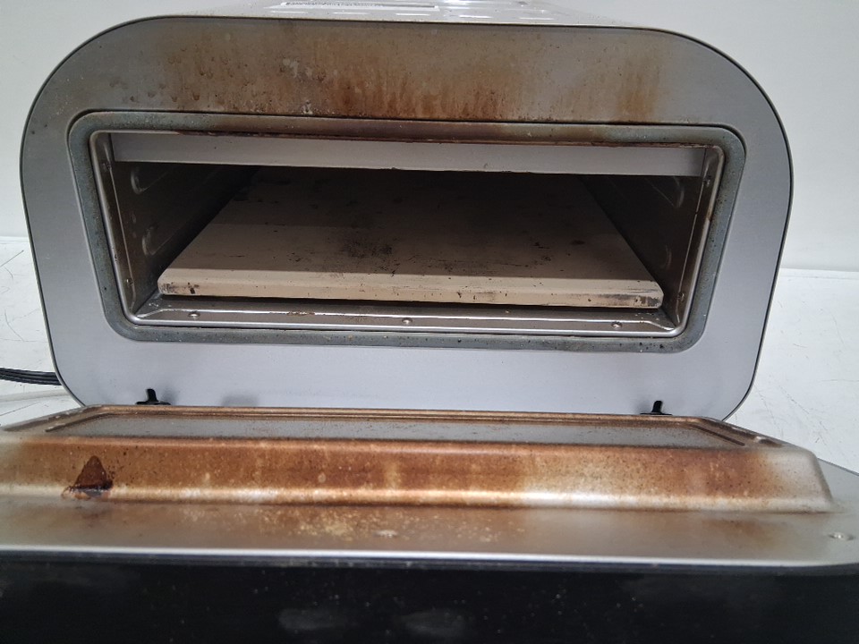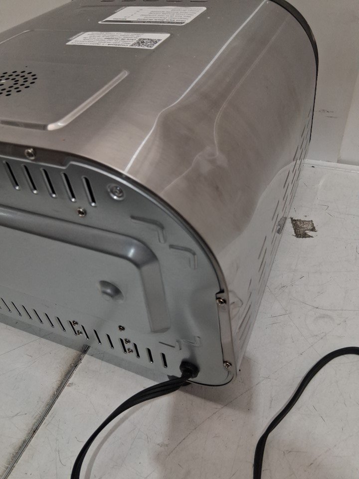 please note the product was tested for basic power only. the product was also discovered to be covered in dust, dirt, smudge marks, and food residue, this can be cleaned. along with this we found some dents in the back corner of the product, please see photos for more details