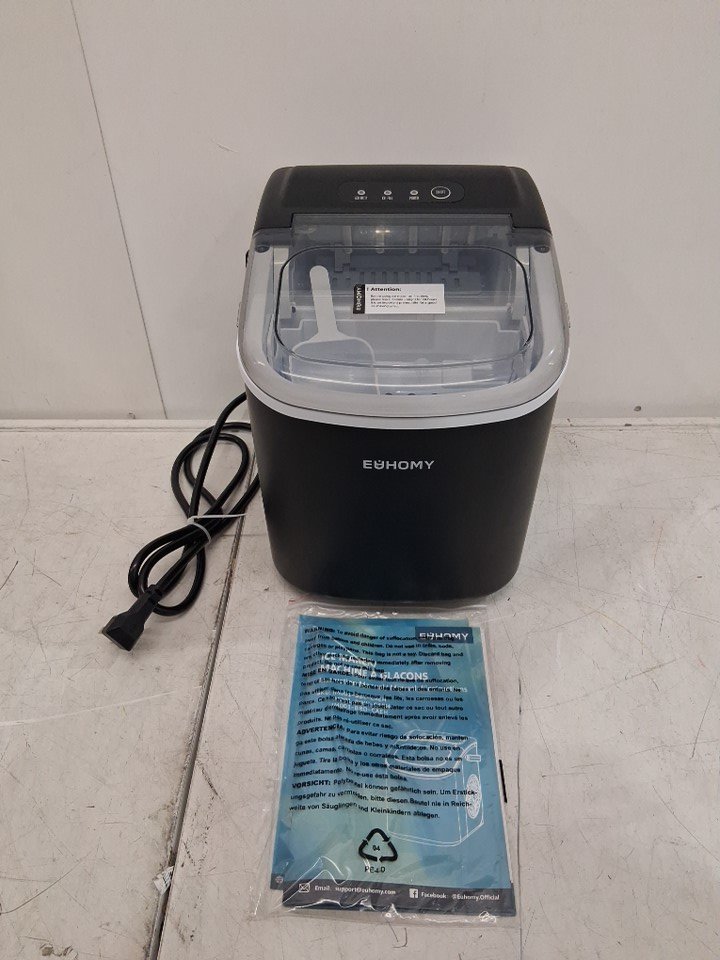 EUHOMY Countertop Ice Maker Machine with Handle, Basket and Scoop - MAKES 26LBS Per Day - BLACK (MODEL: IM-06D)