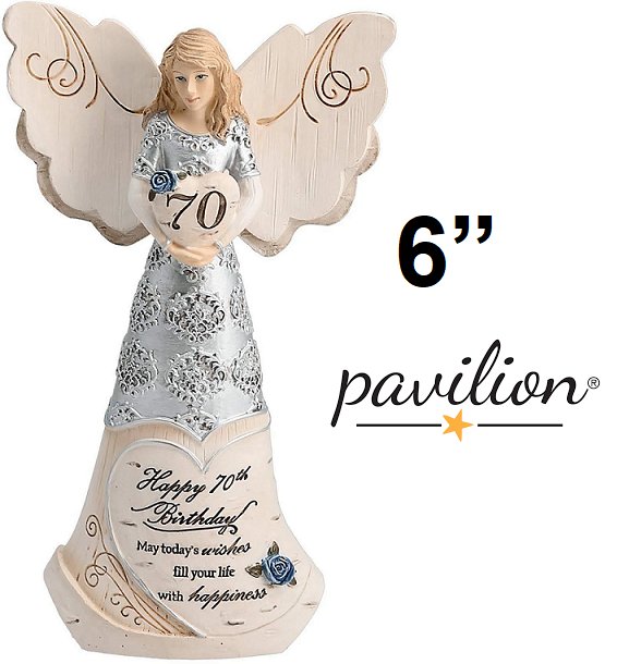 pavilion gift company elements angels - happy 70th birthday - 6"