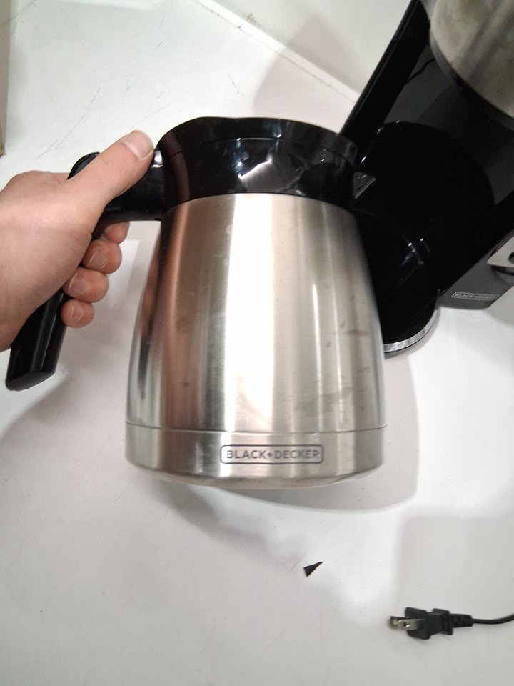 strong smell of coffee / water found in item indicating prior use item was tested for basic power only