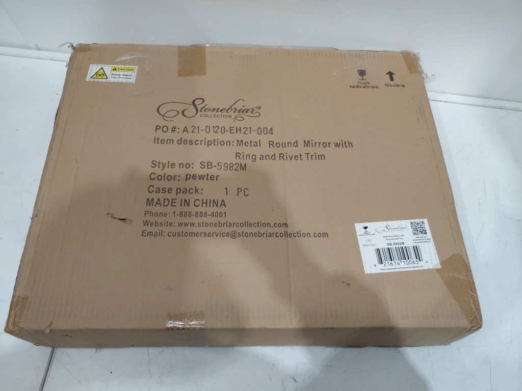 STONEBRIAR COLLECTION ROUND METAL WALL MIRROR - 13.6" - RUSTIC pewter (MODEL: SB-5982M)