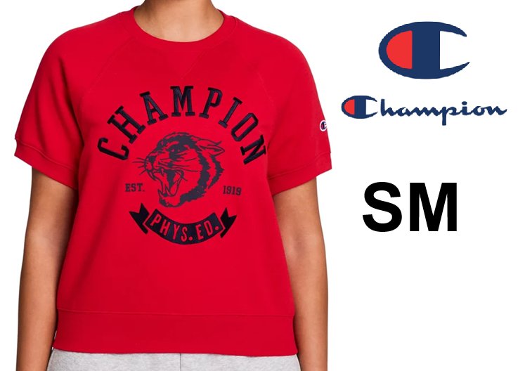women's champion short sleeve fleece logo sweater - size small - red/black (Style: 1966803)