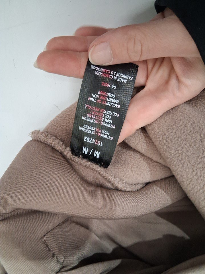 Has a worn smell and the tag has some markings.