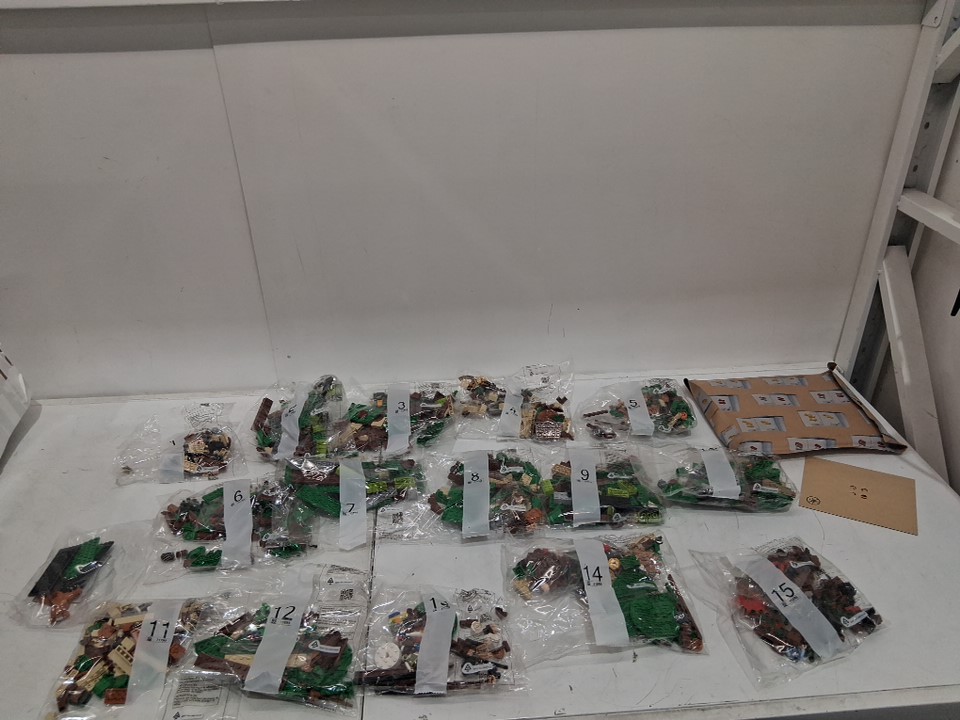 Please note the bag 14 has a small cut and we are unable to verify if all pieces in bag 14 are present. All other bags remain sealed, see photos for reference.