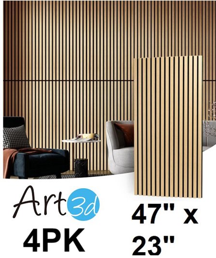 4pk Art3d Wood Slat Acoustic Panels for Wall and Ceiling - 47" x 23" - oak ‎ - (model:A31116P2)
