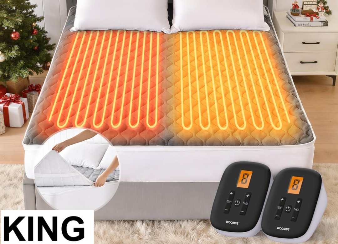 WOOMER electric heated mattress pad with dual control- king - grey (model: WEMP-G7880)