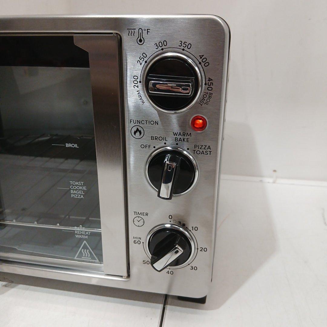 Signs of previous food use on interior, as well as some scuffs visible on the exterior. Tested for power. Missing some insert grates/trays.