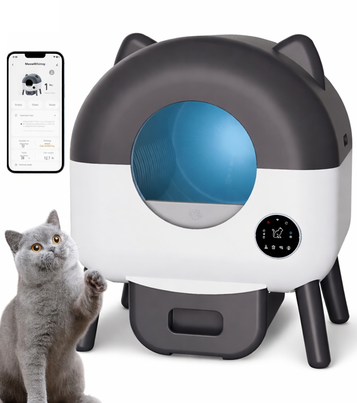 MeowWhimsy Neo-AE App Compatible Self-Cleaning Cat Litter Box - 19.7" x 15.8" x 17.7" - White/Grey (Model: catbox-neo-ae)