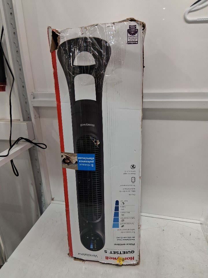 Honeywell quietset whole room tower fan with 5 Speeds, remote control & auto shut-off - 40" - 120V - black (model: hyf260bcv1)