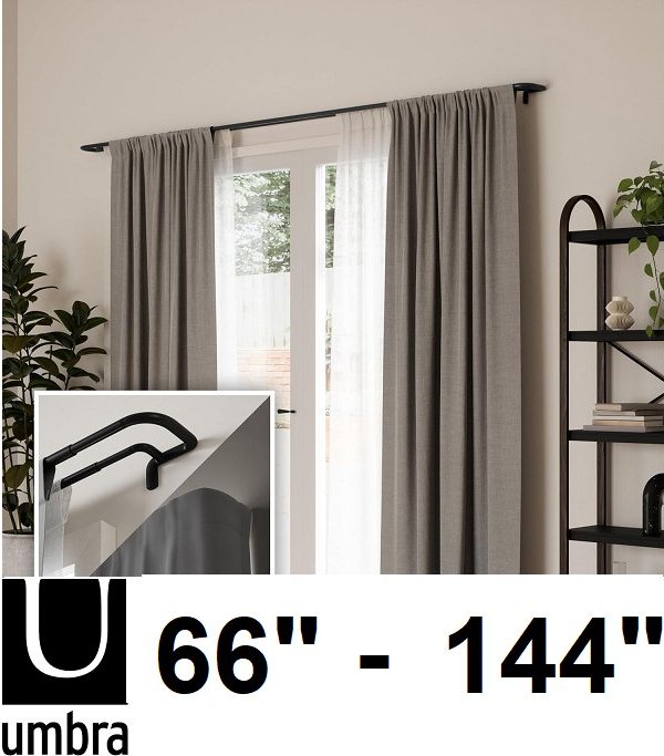 umbra twlight double curtain wrap around design ideal for black out blinds - 66"-144" - black (model:‎ 1020562-038)