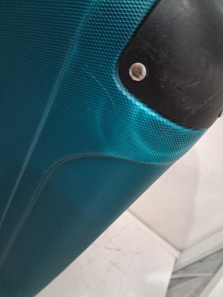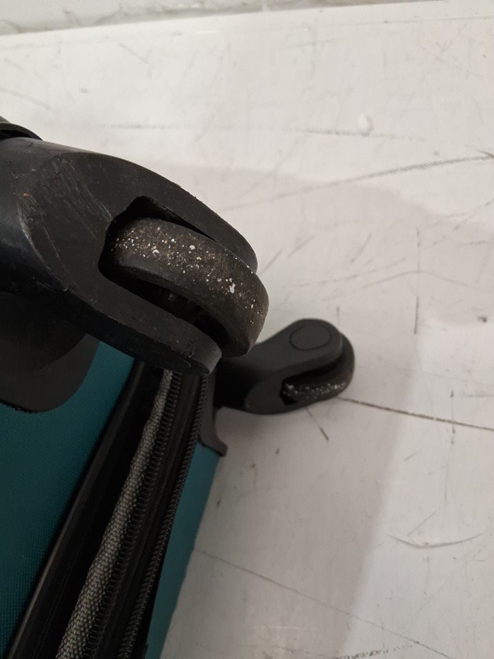 There is some discoloring on the product as well as slight denting from previous use. There is also some dirt on the wheels.