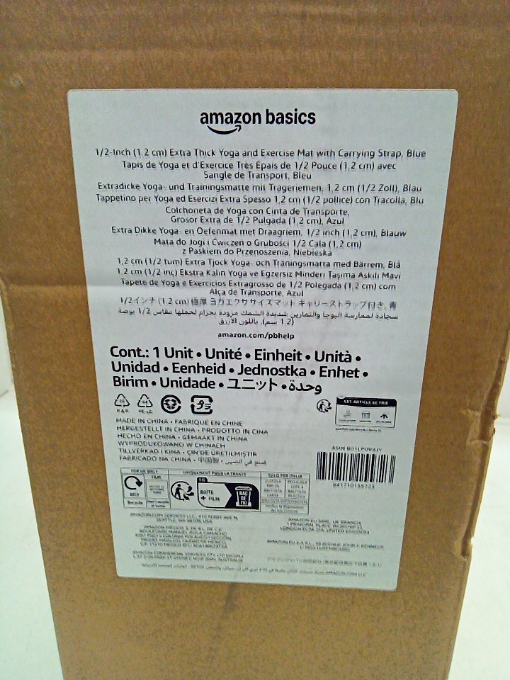 AMAZON BASICS EXTRA THICK EXERCISE YOGA MAT WITH CARRY STRAP - 74" X 24" X 1/2" THICK - BLUE