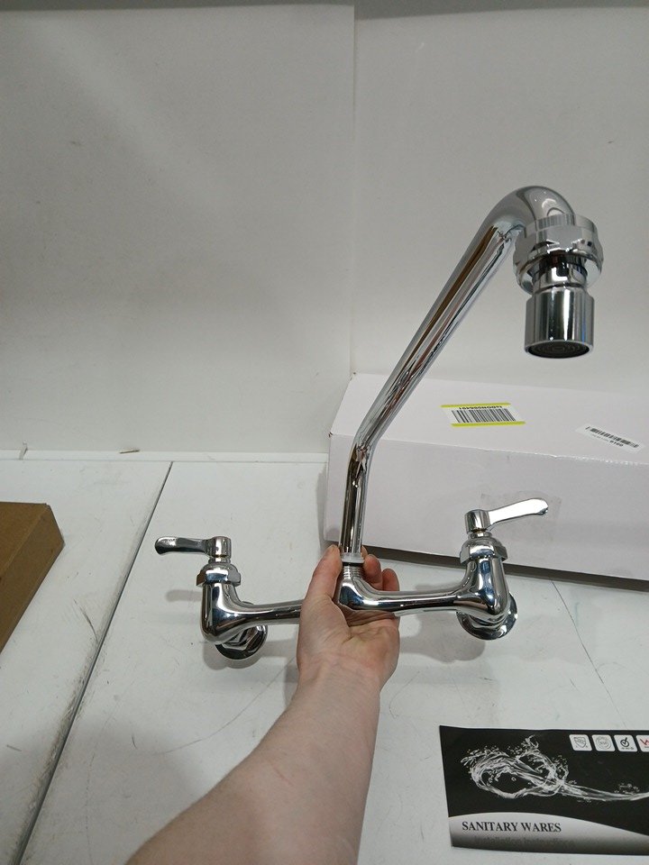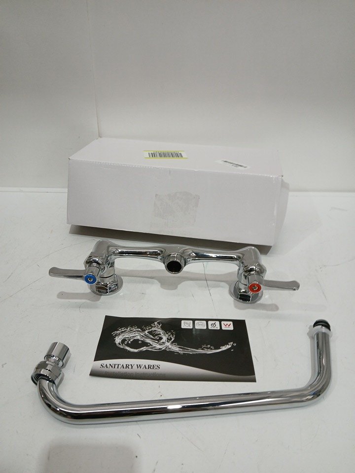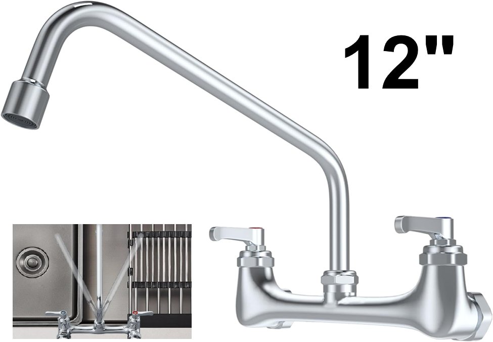Commercial Wall Mount Kitchen Faucet with 12" Swivel Spout - chrome polished