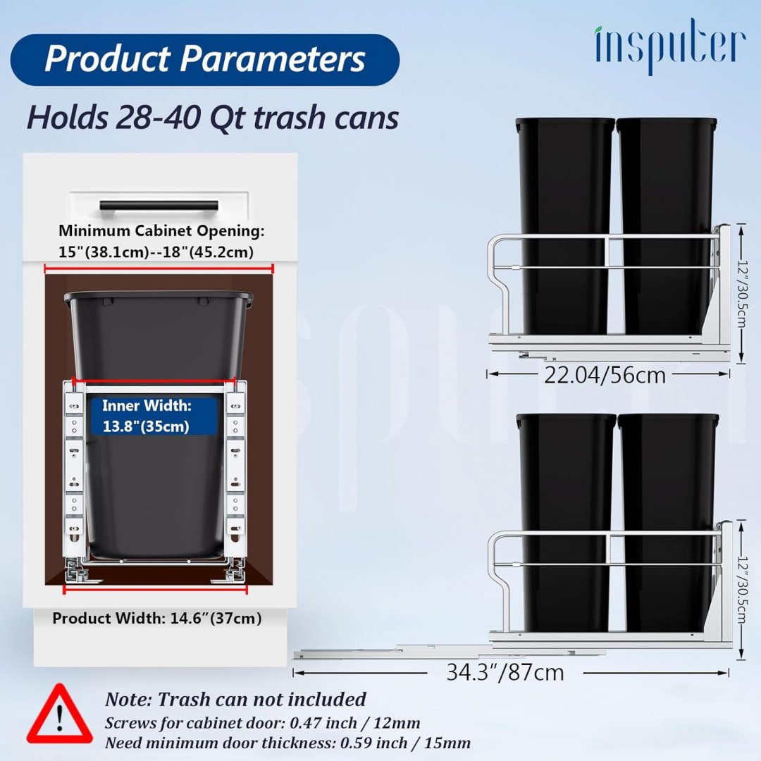 insputer Heavy Duty Under Sink Double Pull Out shelf for garbage bins - 22" to 34.3" x 12" - silver (model: pm375)