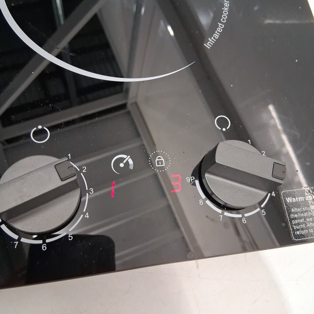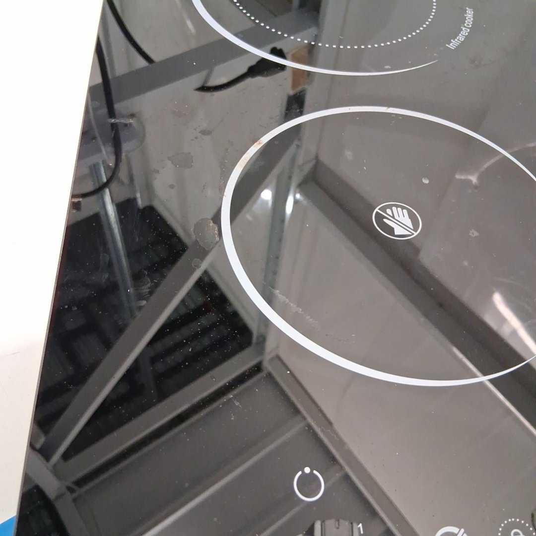 There are smear/splatter marks on the stove top from previous use. Tested for power.