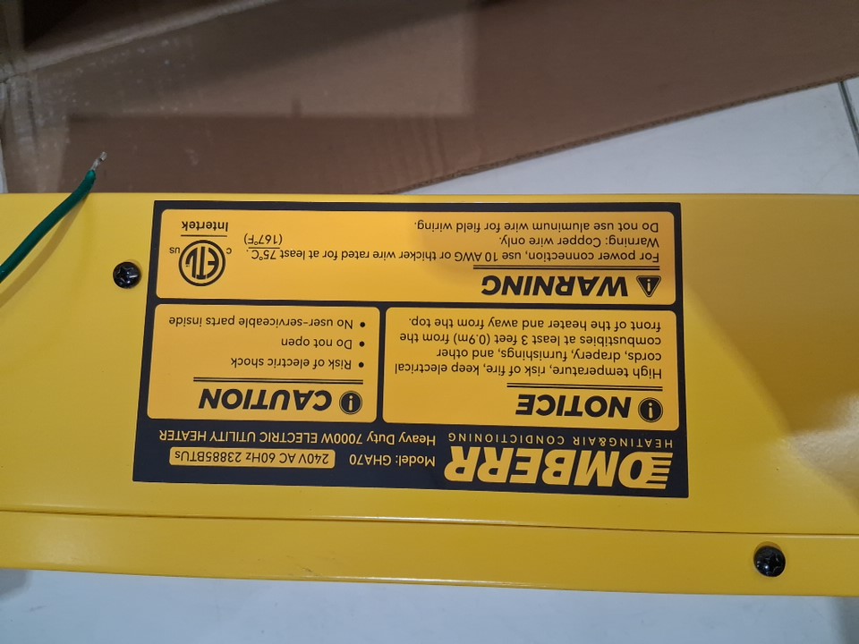 Omberr Electric Garage Heater - 7000w - yellow/black (model: GHA70)