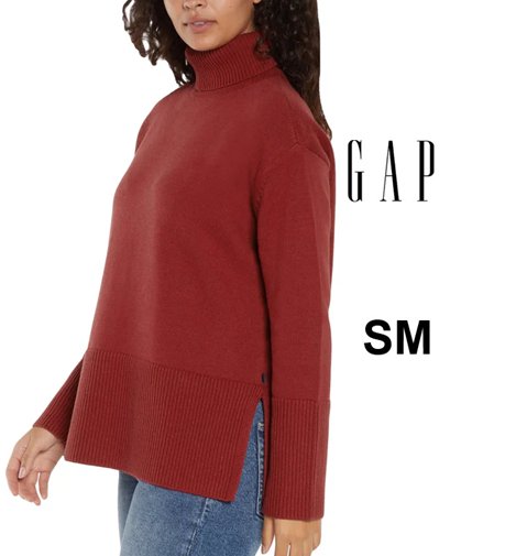women's gap knit split hem turtle neck sweater - small - red (style:1809635)