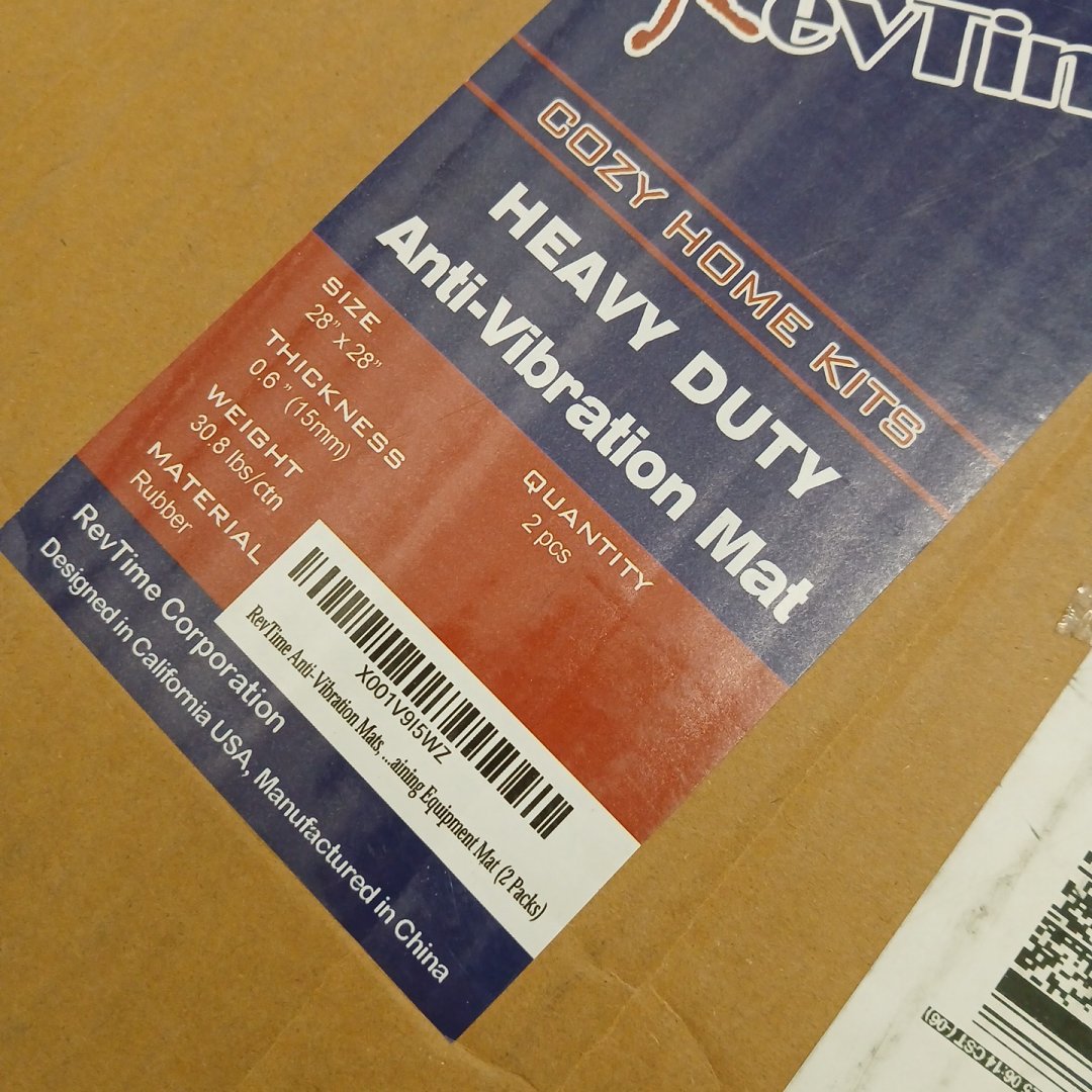 2PK REVTIME ANTI-VIBRATION THICK RUBBER MATS FOR WASHER, DRYER, GYM EQUIPMENT - 28" (0.6" THICK) - BLACK