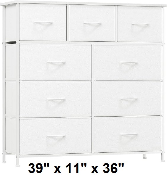 Somdot Dresser, Chest of Drawers, Storage, Shelf, Stylish, Fabric, Clothes Storage - 39" x 11" x 36" - white - (model: fd110c09)