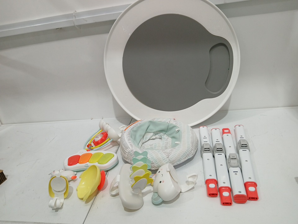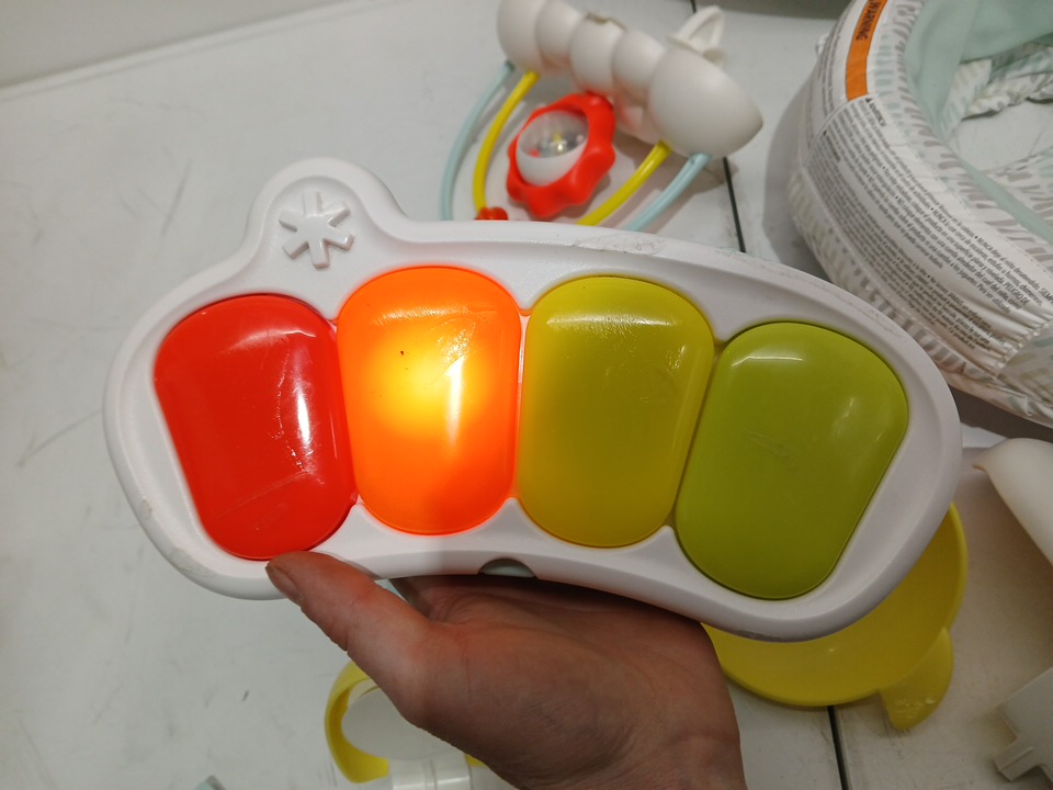 light signs of use overall on item, typical to use for the item type. stickiness on the buttons, dirt and marking on items. all pieces required for assembly are included, additional generic hardware may be required