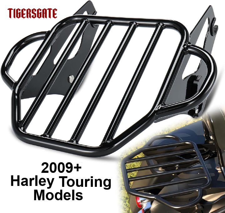 TIGERSGATE Detachable Two-Up Luggage Rack Fender Shelf - Fits 2009 and Up Harley Davidson Touring Models - Black - (Model: LR012-B)