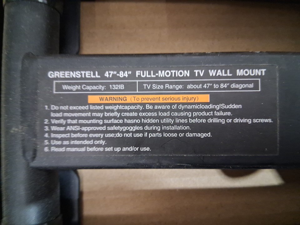*GENERIC CONDITION STATEMENT* Additional generic hardware may be required for full assembly / installation. Generic hardware may include (but not limited to) screws, bolts, nuts, washers, power adapters / cables, HDMI cables, batteries, etc.