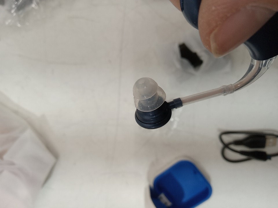 Rechargeable BTE Wireless Hearing Amplifier with 4 Noise cancelling mode - blue (MODEL: g25)