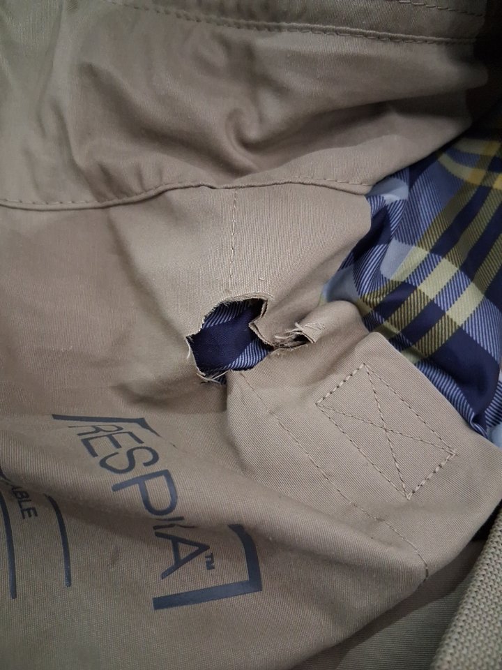 Please note there is a cut on the inside liner, see photos.
