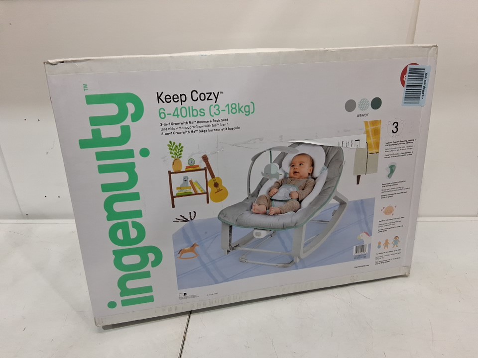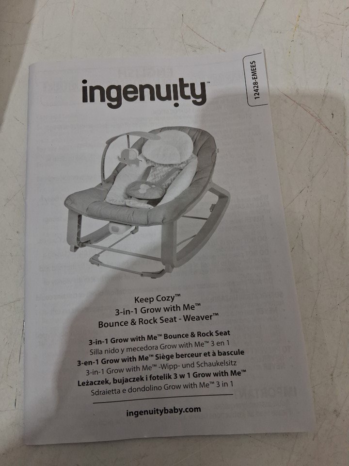 Ingenuity 3-in-1 Keep Cozy Grow with Me Vibrating Baby Bouncer, rocker & chair - 40lbs max- weaver theme- grey/white/green (model: ‎12428)