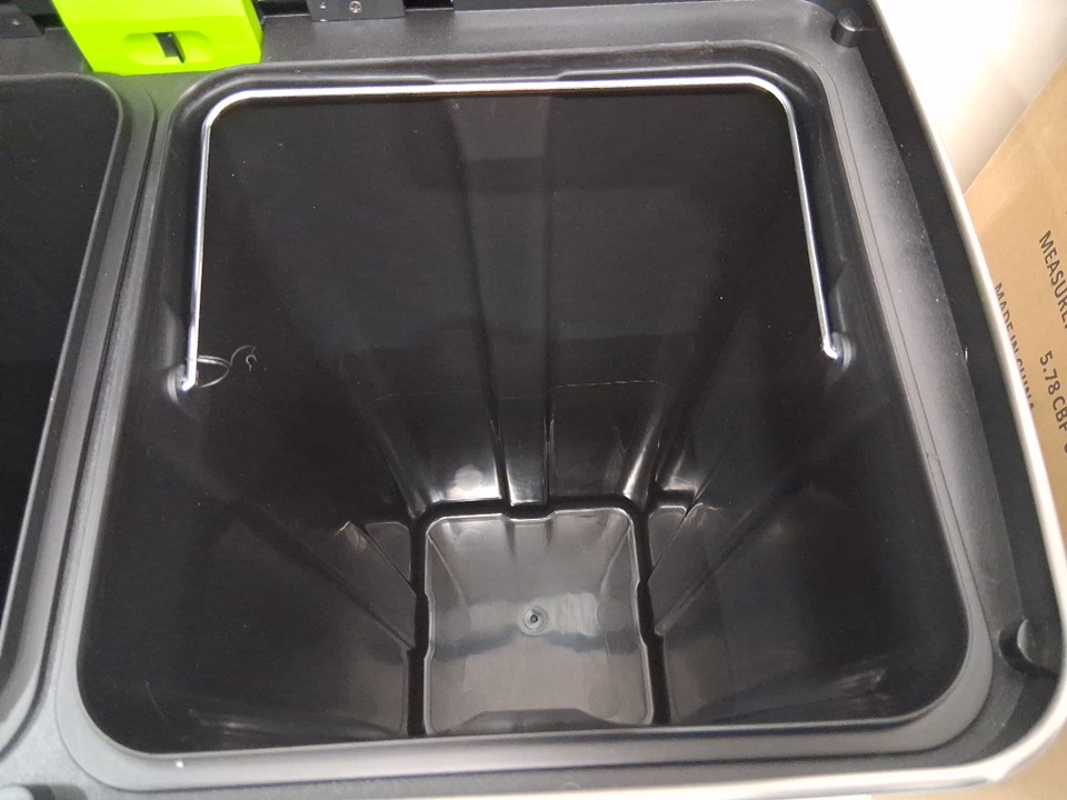 There are fingerprint smudges on the outside of the can and scratches inside the compartments indicating previous use, but there do not appear to be any scratches or dents on it (see photos)
