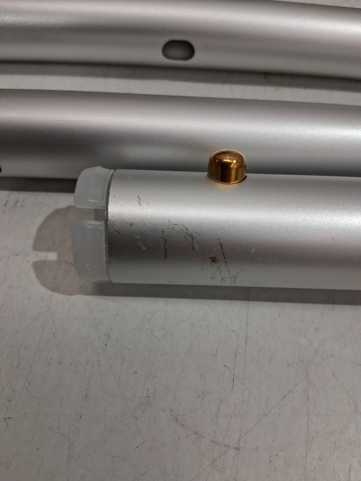 Item has marks and scuffs from previous use. Also, one of the screws is stuck. (See photos)