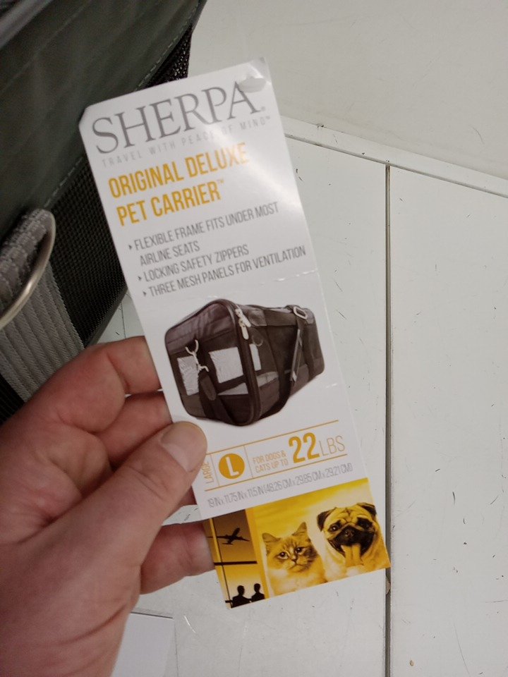 SHERPA ORIGINAL DELUXE PET TRAVEL CARRIER - large -19" x 11.5" - 22lb cap - Charcoal grey (model: 55555)