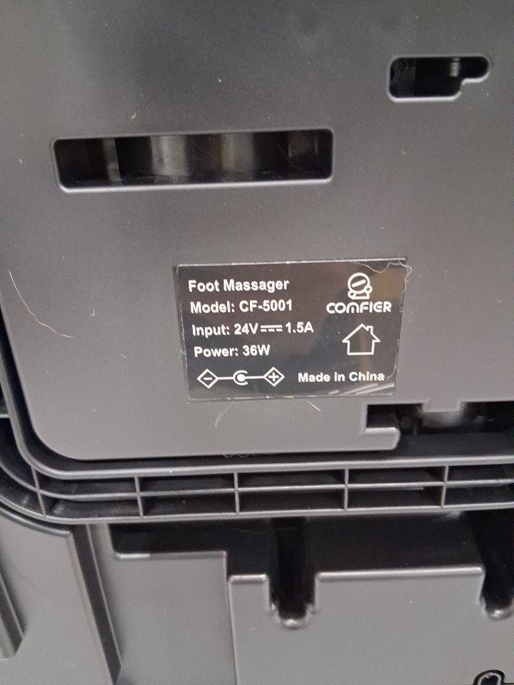 There are two small stains on the back of the massager due to previous use, there are also some light scratches on the bottom of the massager's legs. (Please see photos) The massager was tested for basic power and function.