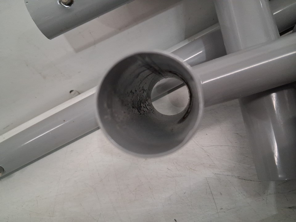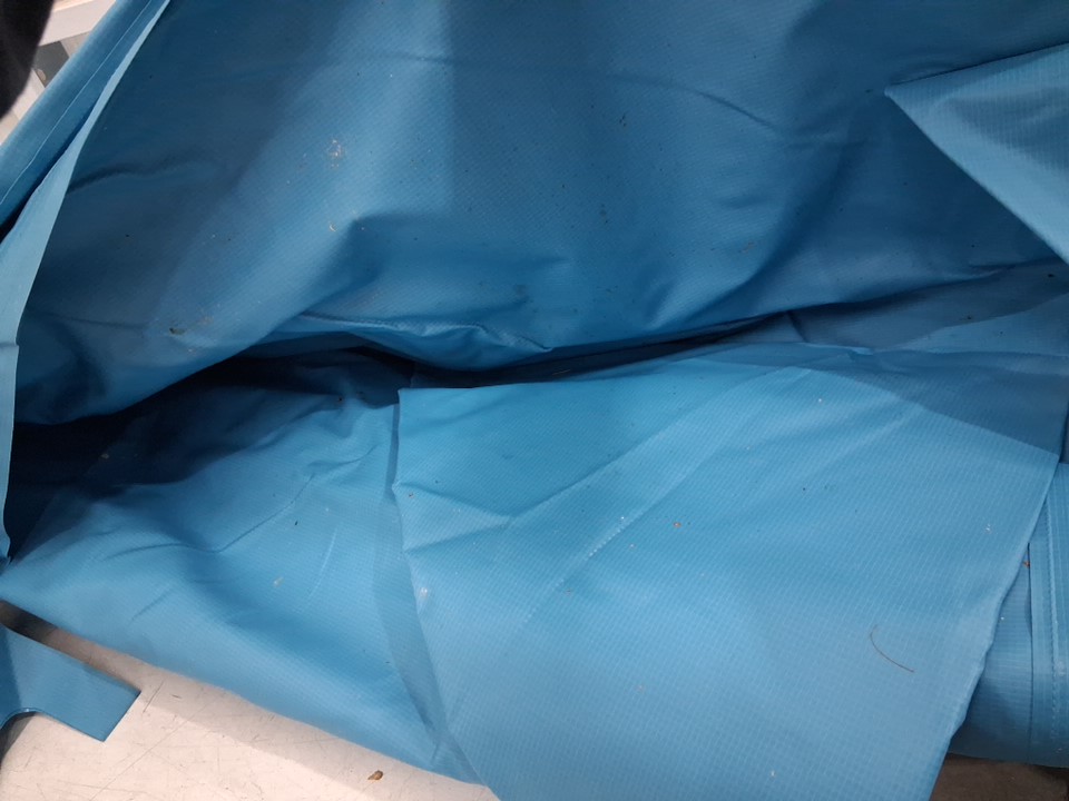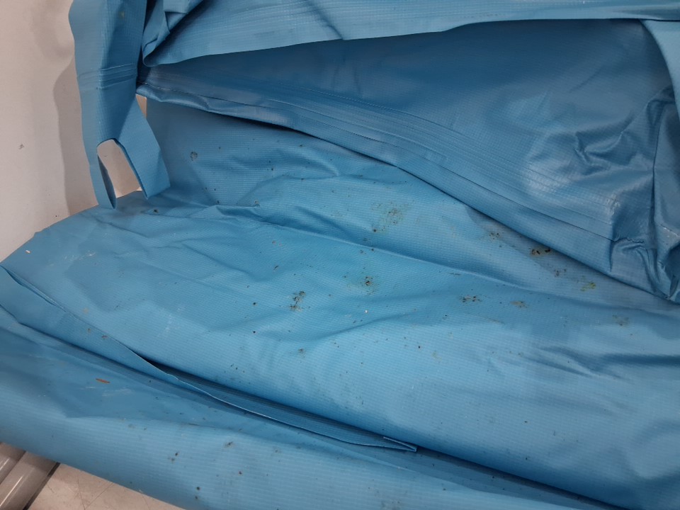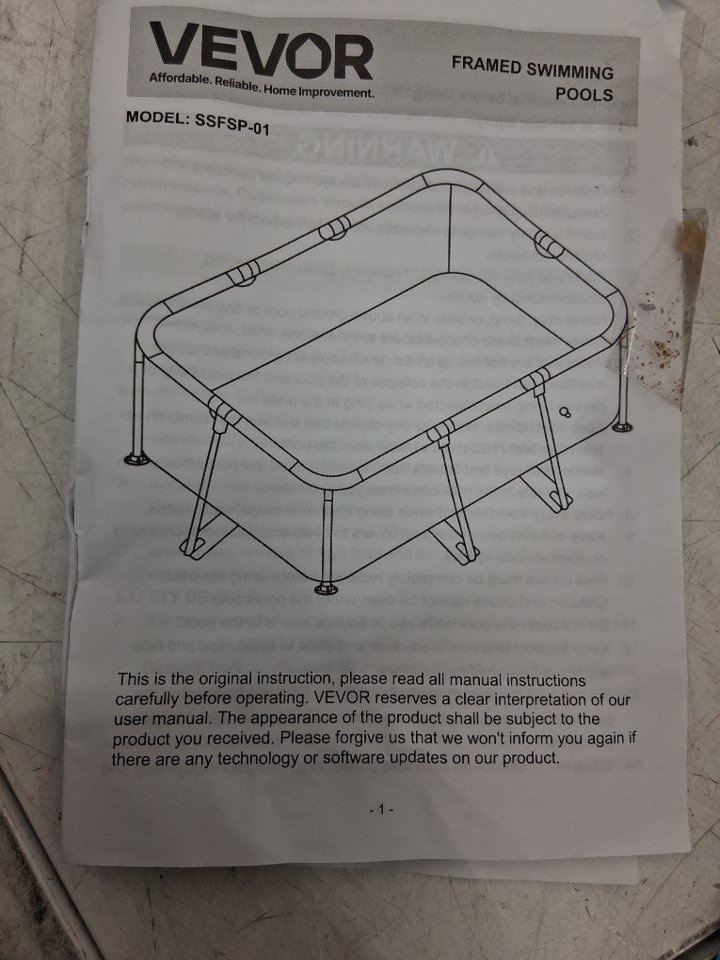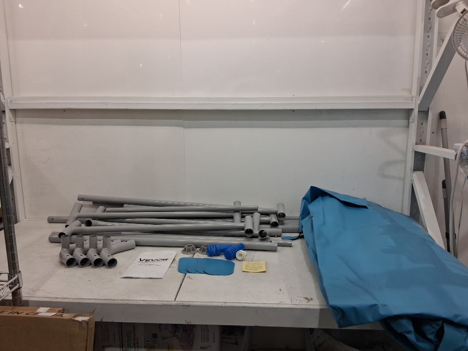 Missing two base feet, dirt/sand/mud/scuffs on pool framing and poles from previous use.