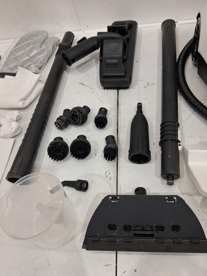 Item shows signs of previous use such as mild dirt/dust on multiple pieces, and discoloration/debris on fabric accessories. Item tested for power.