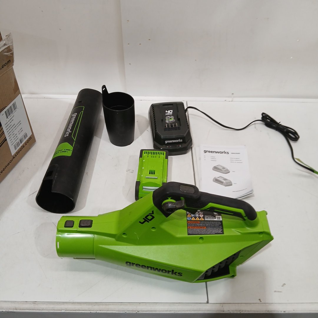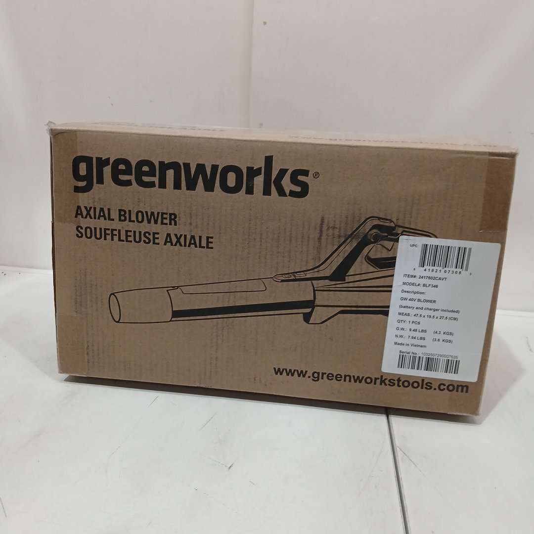 GREENWORKS CORDLESS JET LEAF BLOWER WITH BATTERY & CHARGER - 40V / 125MPH / 450CFM - GREEN (MODEL: blf346)