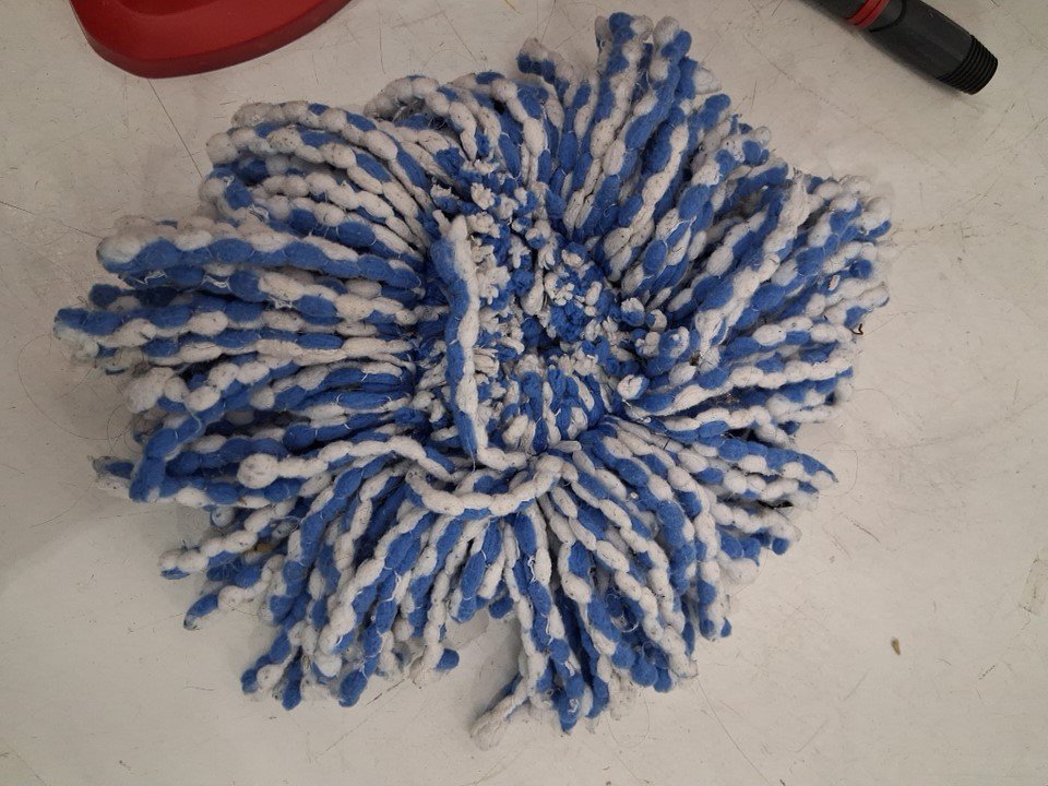 item has some water debris inside and the mop head is dirty from previous use