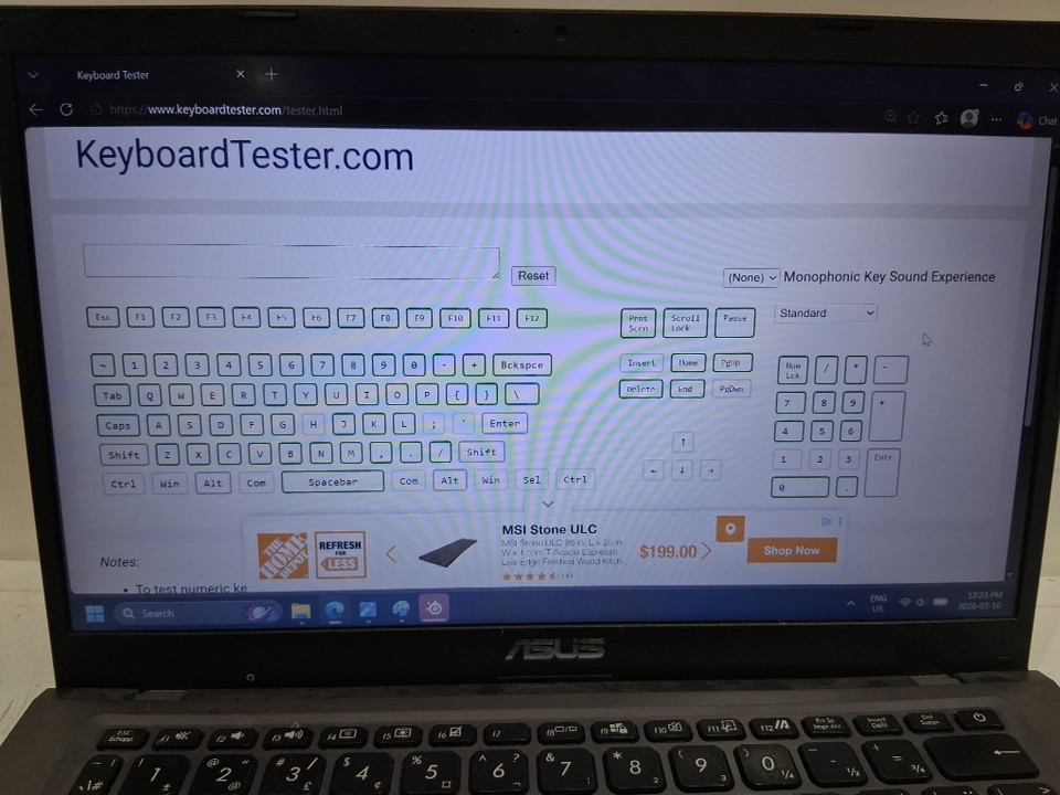 This product contains kays that do not work. The H key, as well as 1,2,3 on the number pad do not work.