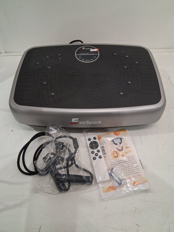 Tested for power and vibration. Please note the exercise plate shows signs of previous use with some dust/debris on the plate, see photos.