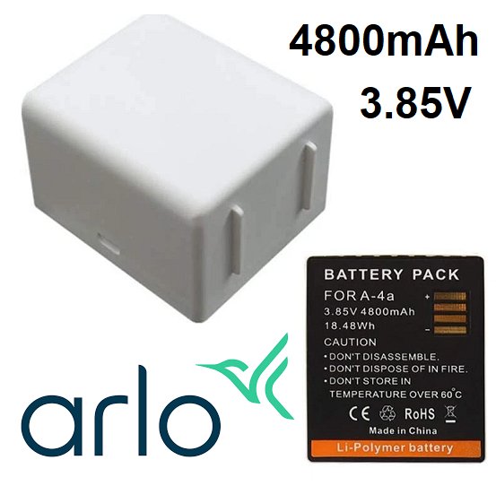 Arlo Pro replacement li-polymer Rechargeable camera battery - 3.85V, 4800mAh (model: a-4a)