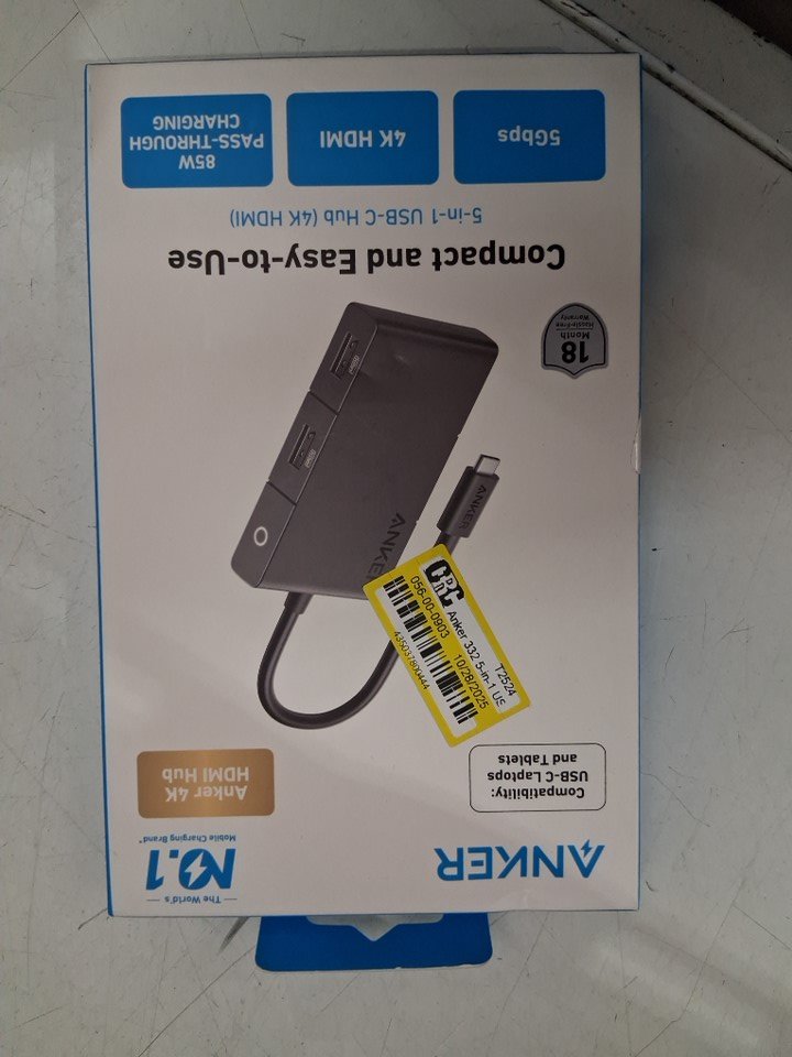 ANKER 5-IN-1 332 USB-C HUB - 4K HDMI DISPLAY, 5Gbps USB-C, 2 USB-A ports - 100W PD - BLACK (MODEL: A8356)