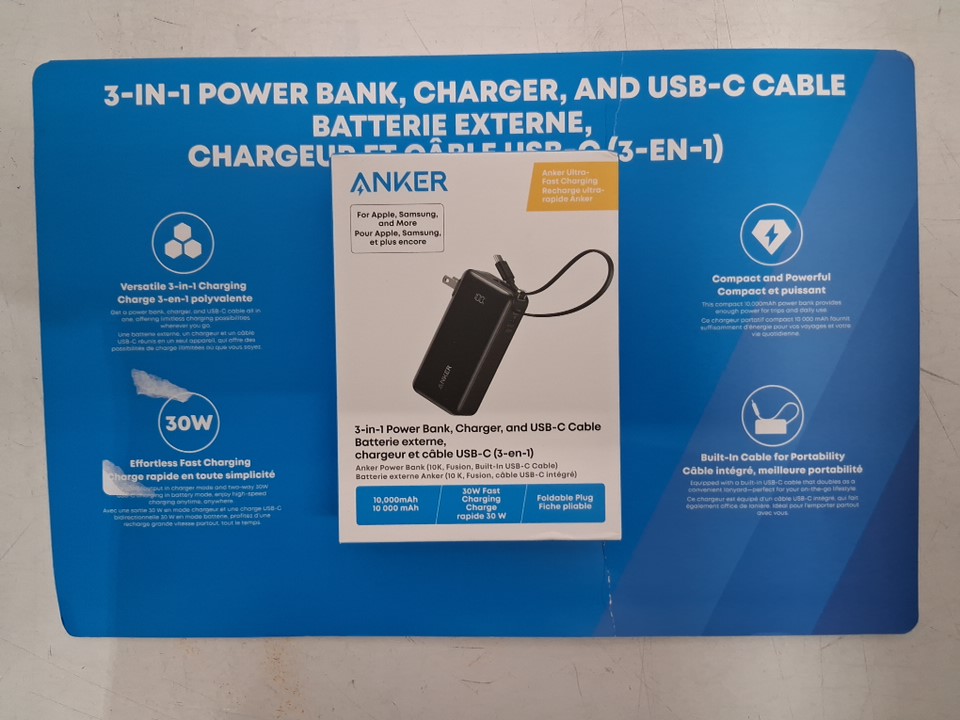 Anker 3-IN1 10K Wireless Portable Charger with Built-In USB-C Cable - 30W - 10000MAH - BLACK (MODEL:3431800)