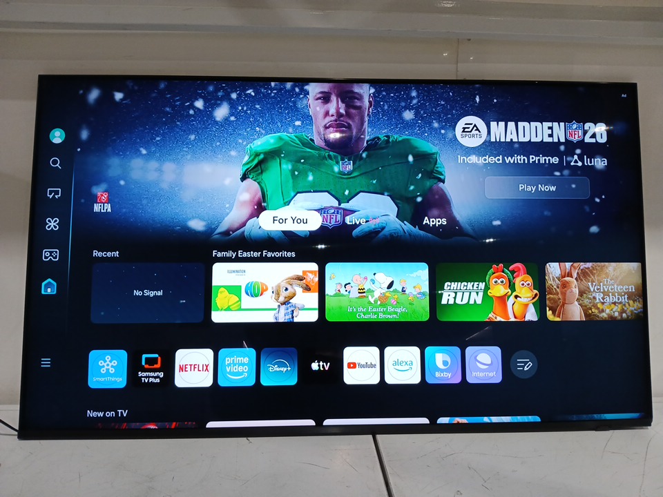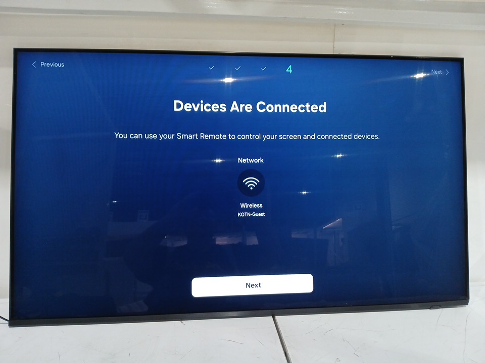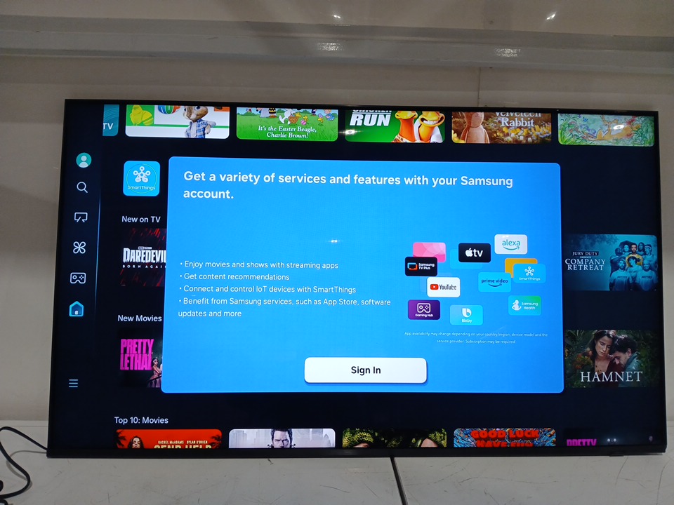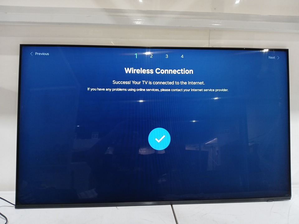 the tv has been tested for power & connectivity. due to no no samsung account, we cannot test for further picture quality. there is a crack on the frame (bottom right hand side) and the pixels around the corner are dead (see images) some generic hardware pieces maybe needed to secure the base to the tv upon future setup.