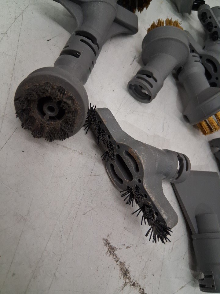 Dirt and residue on the item attachments and discoloration on the pads from prior use. Tested for basic power only.