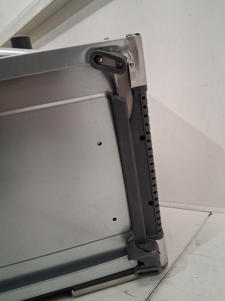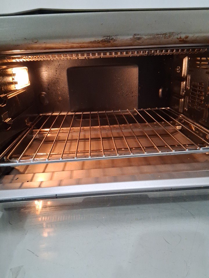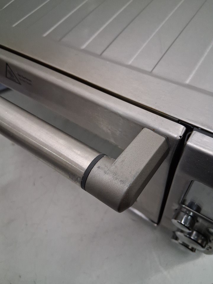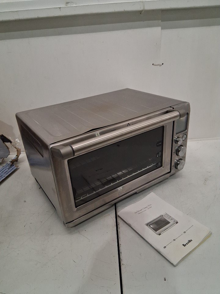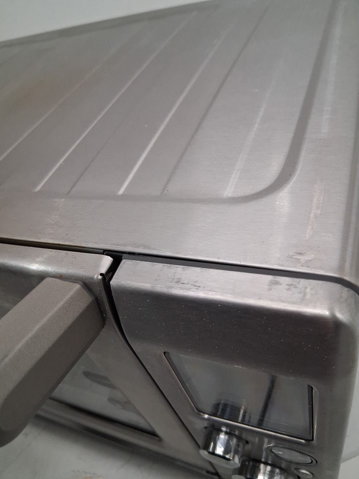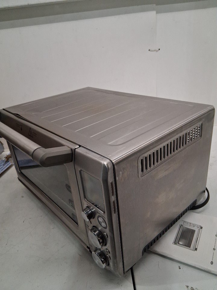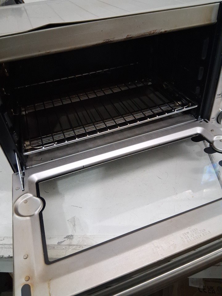 item has some marks inside and outside from previous use, also there is a small dent on the top edge and 2 of the legs are broken shown in pictures tested for power